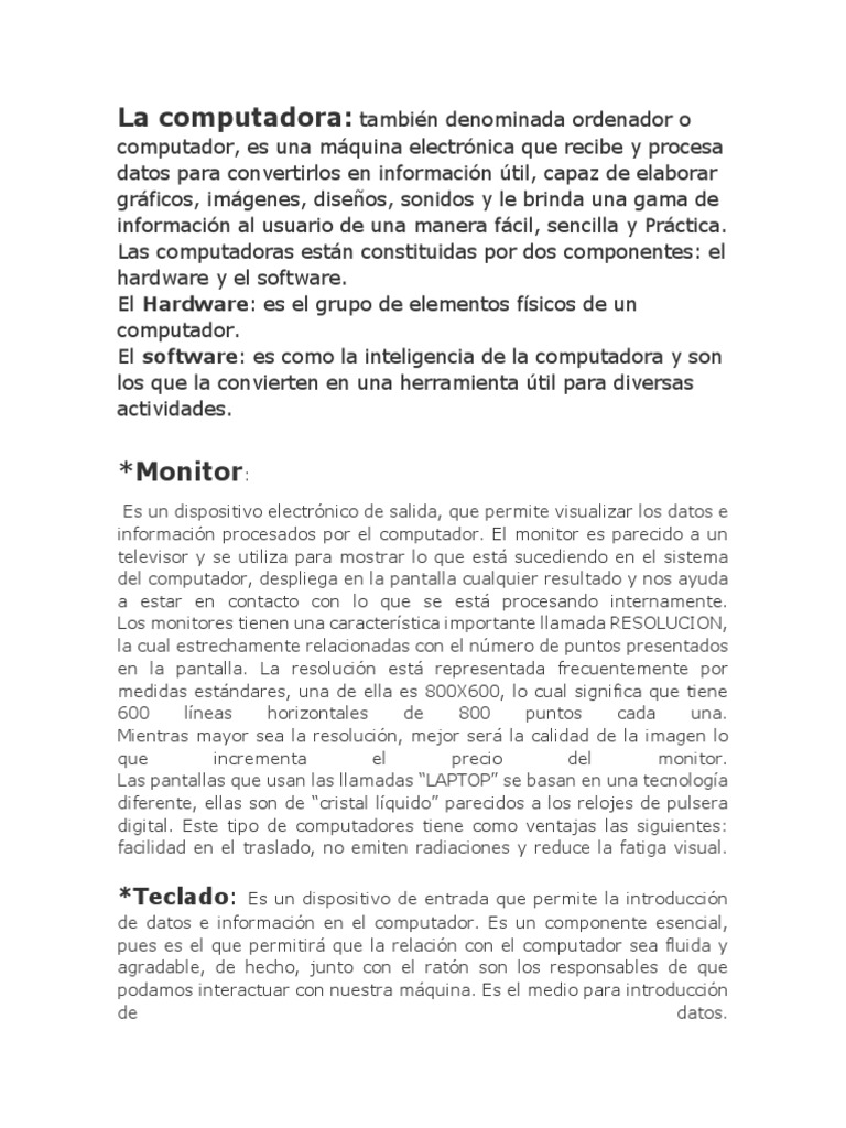 *Teclado: Es un dispositivo de entrada que permite la introducción