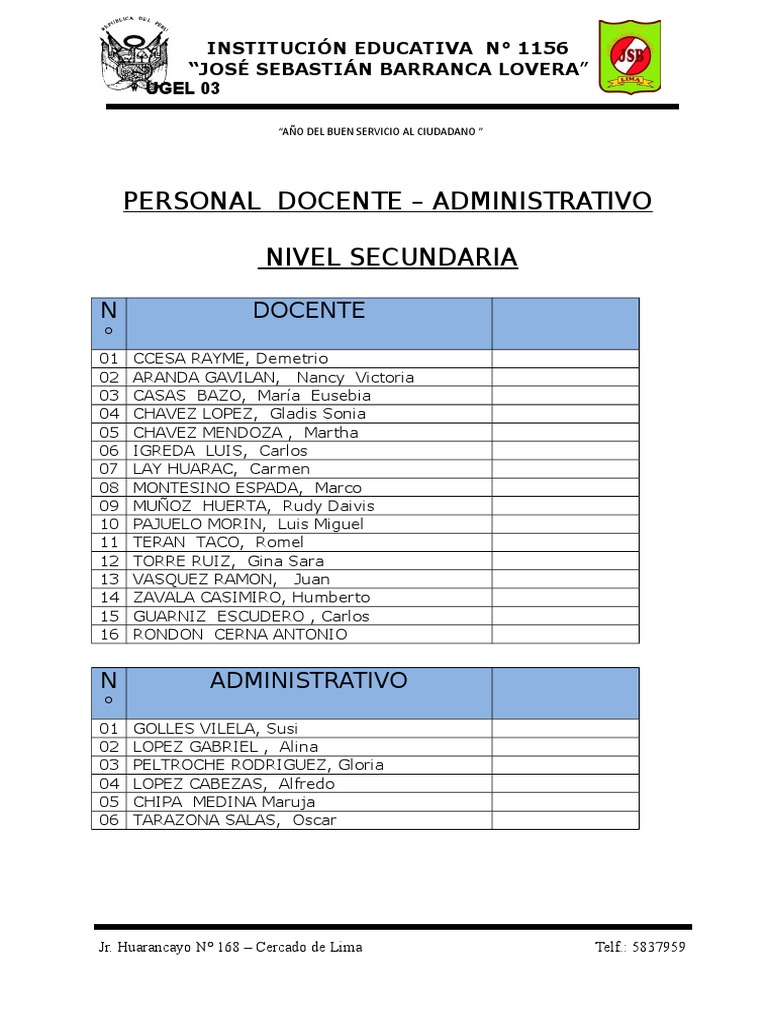 PERSONAL DOCENTE – ADMINISTRATIVO