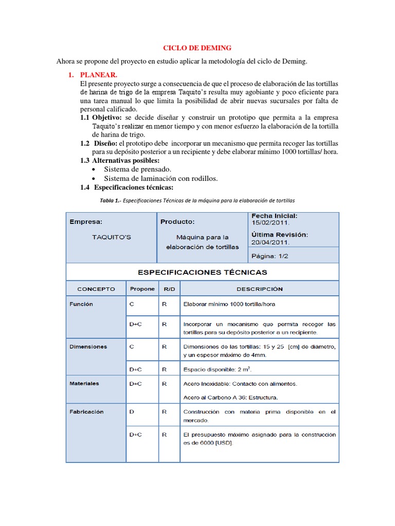 Ahora se propone del proyecto en estudio aplicar la metodología del ciclo de Deming.