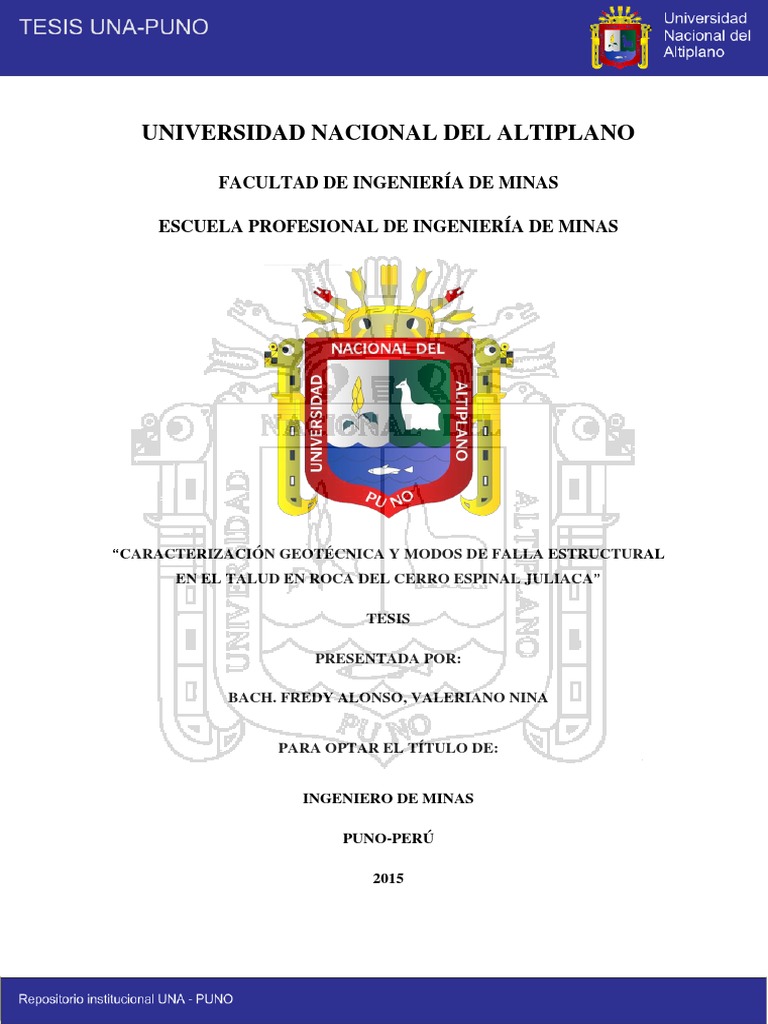 Norte "Mina la Virgen". Puno: Tesis, Universidad Nacional del Altiplano.