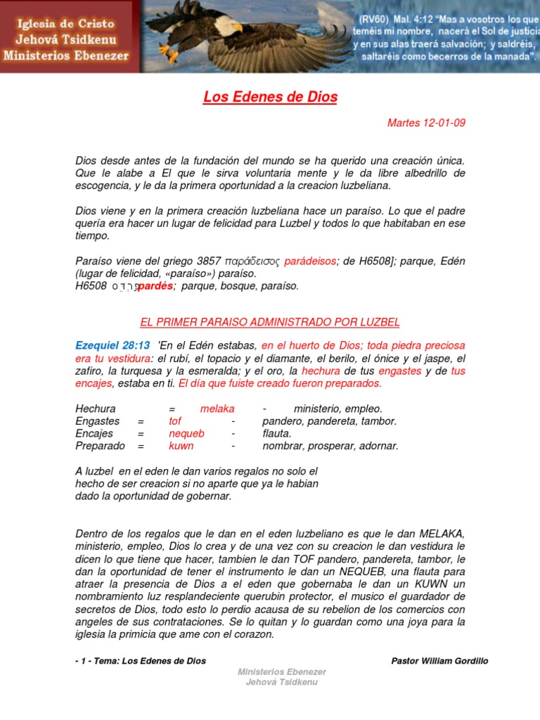 - 1 - Tema: Los Edenes de Dios Pastor William Gordillo
