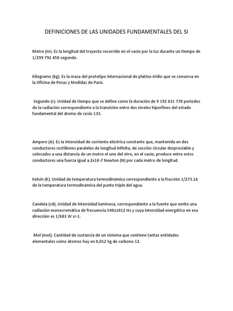 DEFINICIONES DE LAS UNIDADES FUNDAMENTALES DEL SI