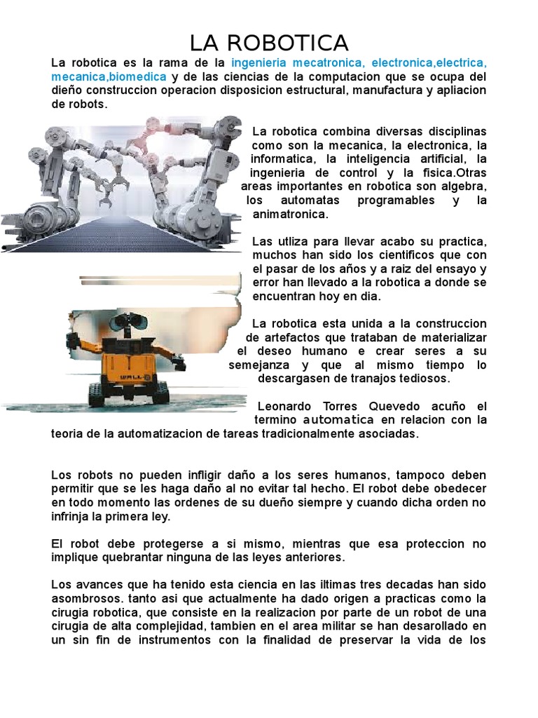 La robotica es la rama de la ingenieria mecatronica, electronica,electrica,