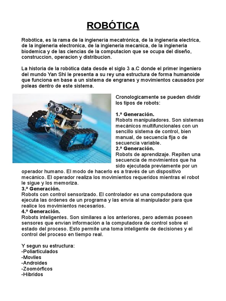 Robótica, es la rama de la ingienería mecatrónica, de la ingieneria electrica,
