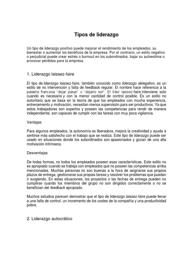 El tipo de liderazgo laissez-faire, también conocido como liderazgo delegativo, es un