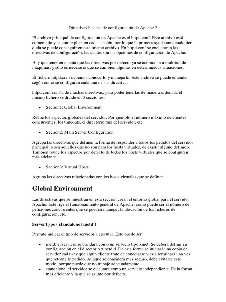 Apache. Este rige el funcionamiento general de Apache, como puede ser el número de
