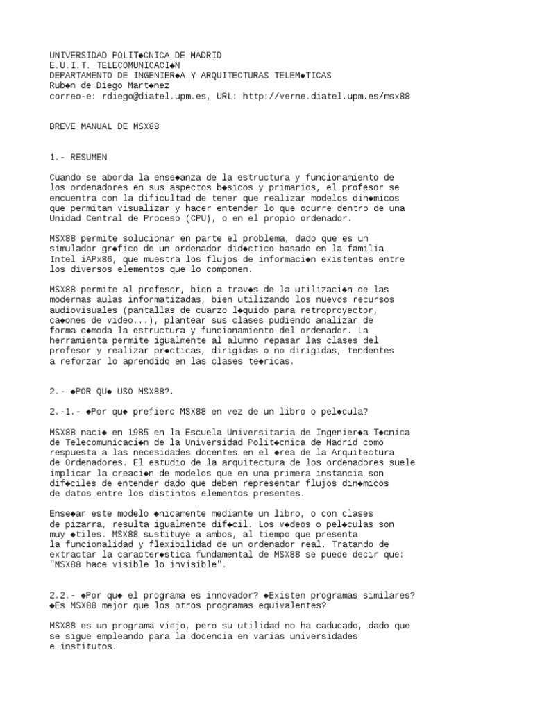 correo-e: rdiego@diatel.upm.es, URL: http://verne.diatel.upm.es/msx88