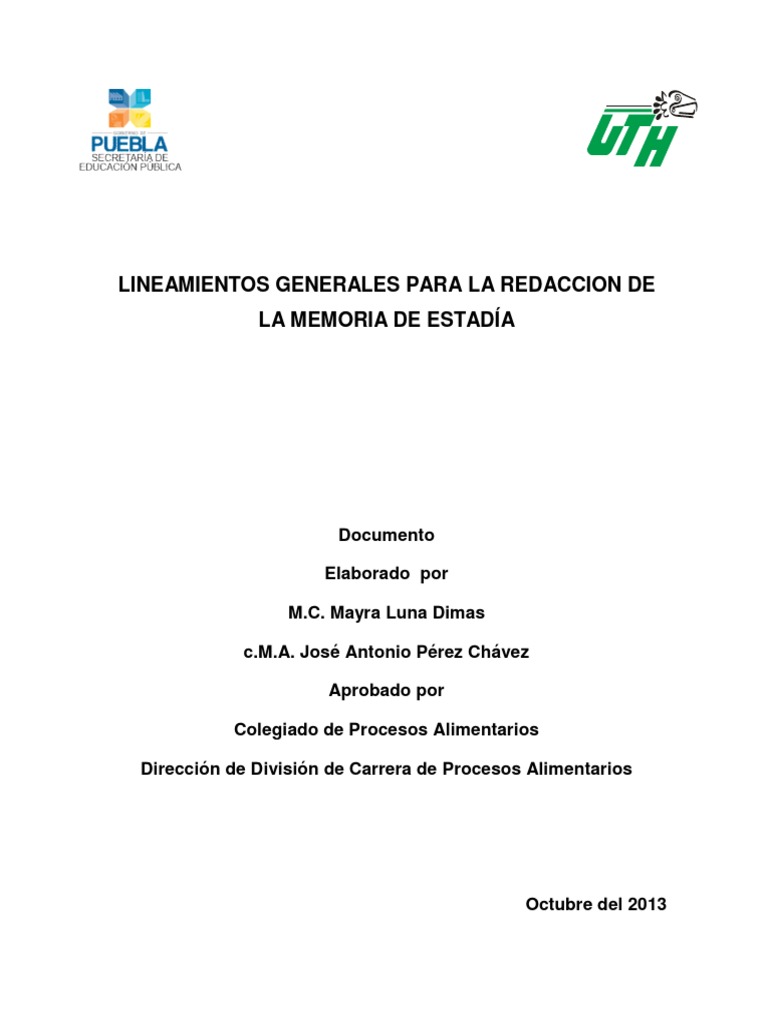 Contiene la estructura de la Memoria de Estadía, el formato de cada