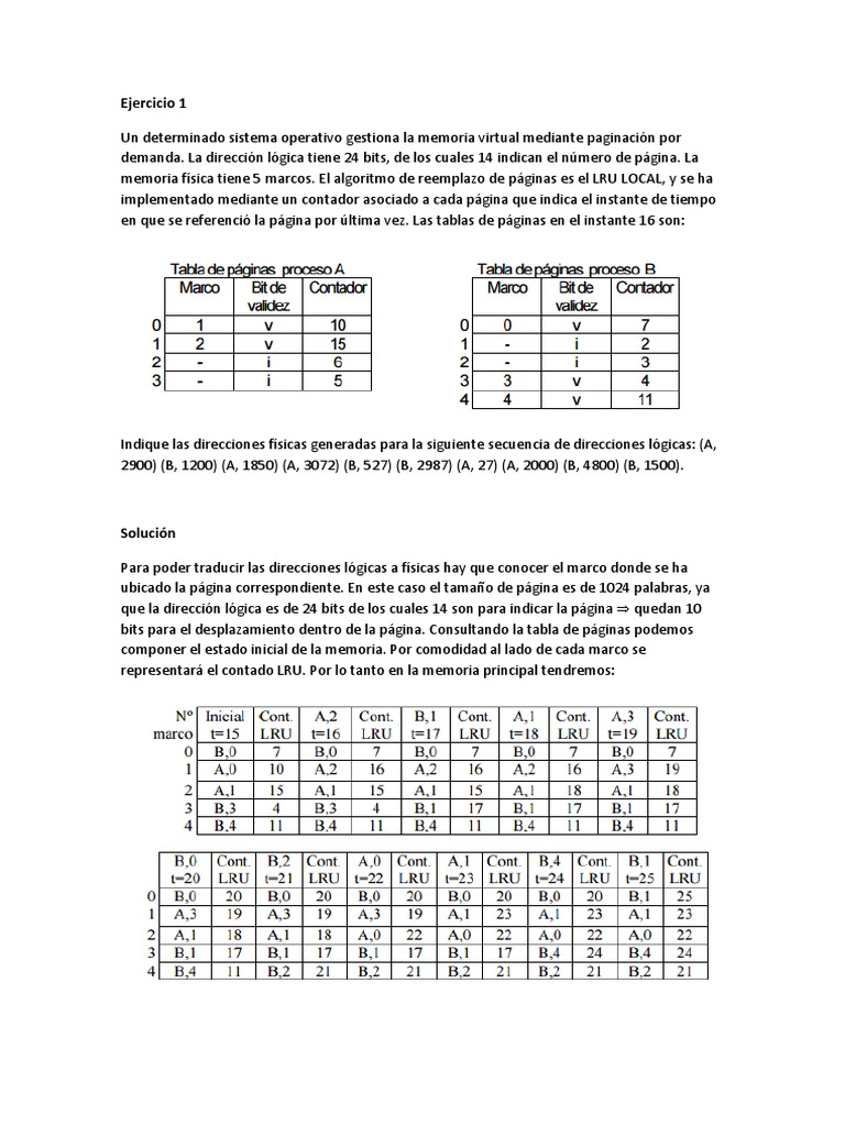 siguientes direcciones lógicas: (A, 0, 350) (B, 2, 112) (A, 1, 422) (B, 0, 277) (A, 1, 604).