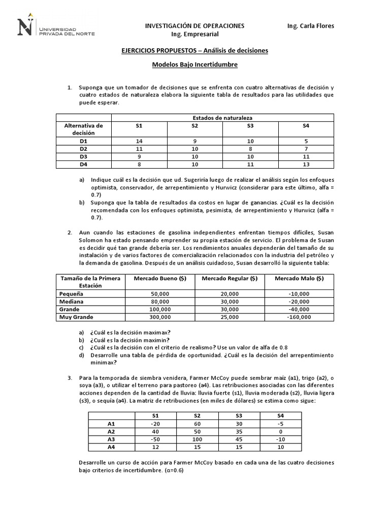 EJERCICIOS PROPUESTOS – Análisis de decisiones