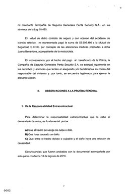 Compaiiia de Seguros Generales Penta Security S.A. se subrogé legalmente en