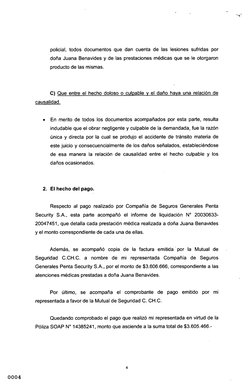 transito referido, mi representada pagé la suma de $3.605.466 a la Mutual de