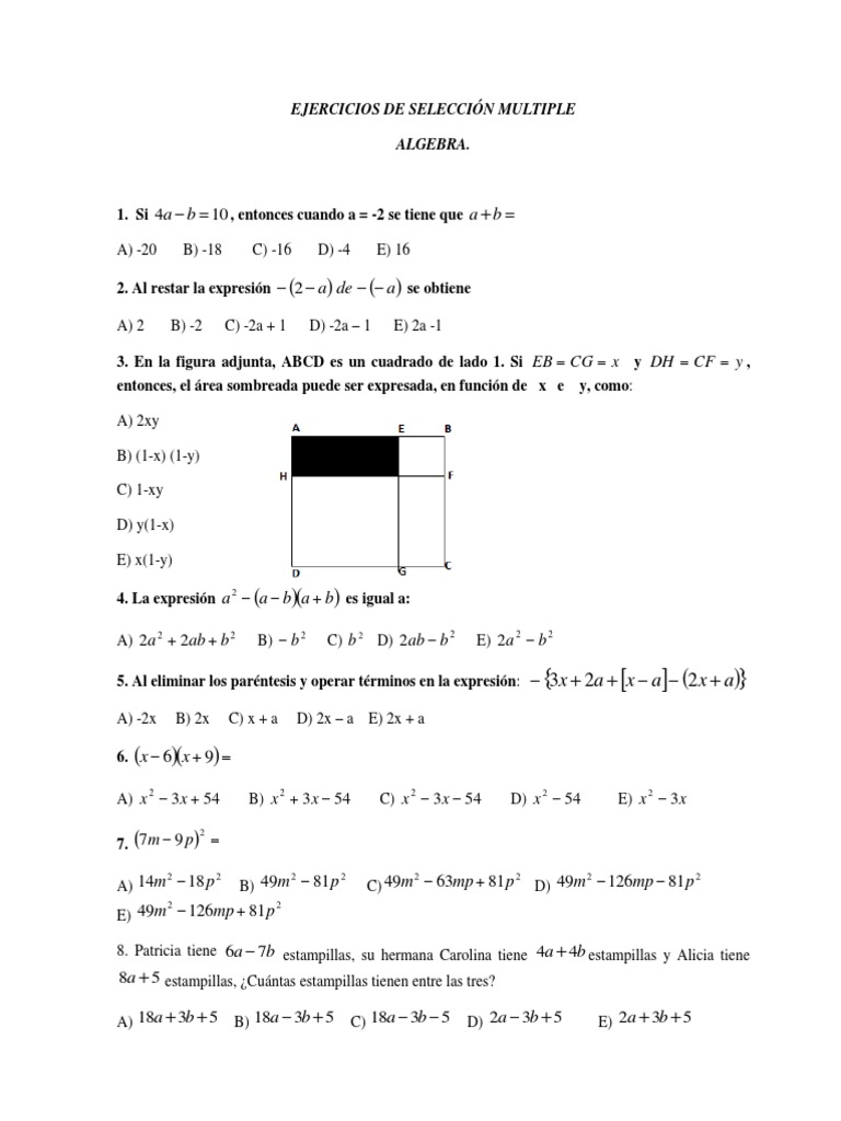 26. El producto de dos expresiones es x y si uno de los factores es (x - y) entonces el otro factor es: