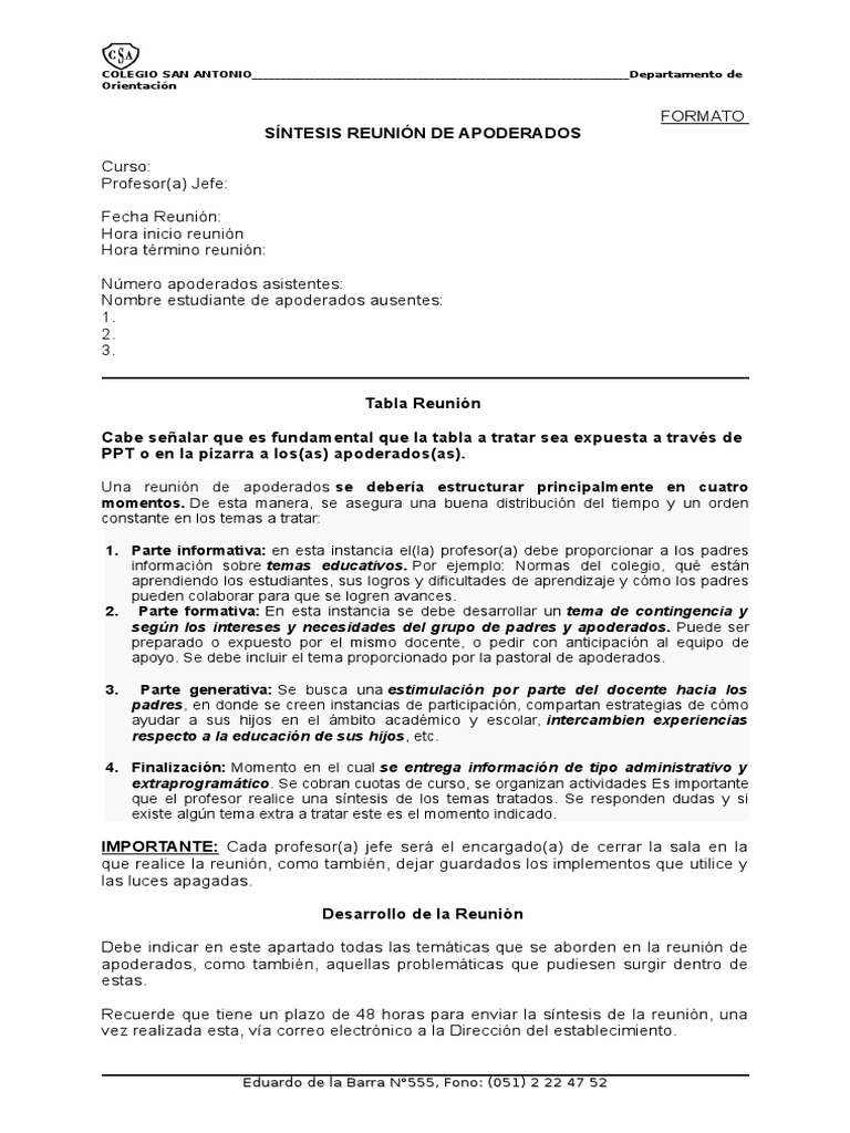 1. Parte informativa: en esta instancia el(la) profesor(a) debe proporcionar a los padres