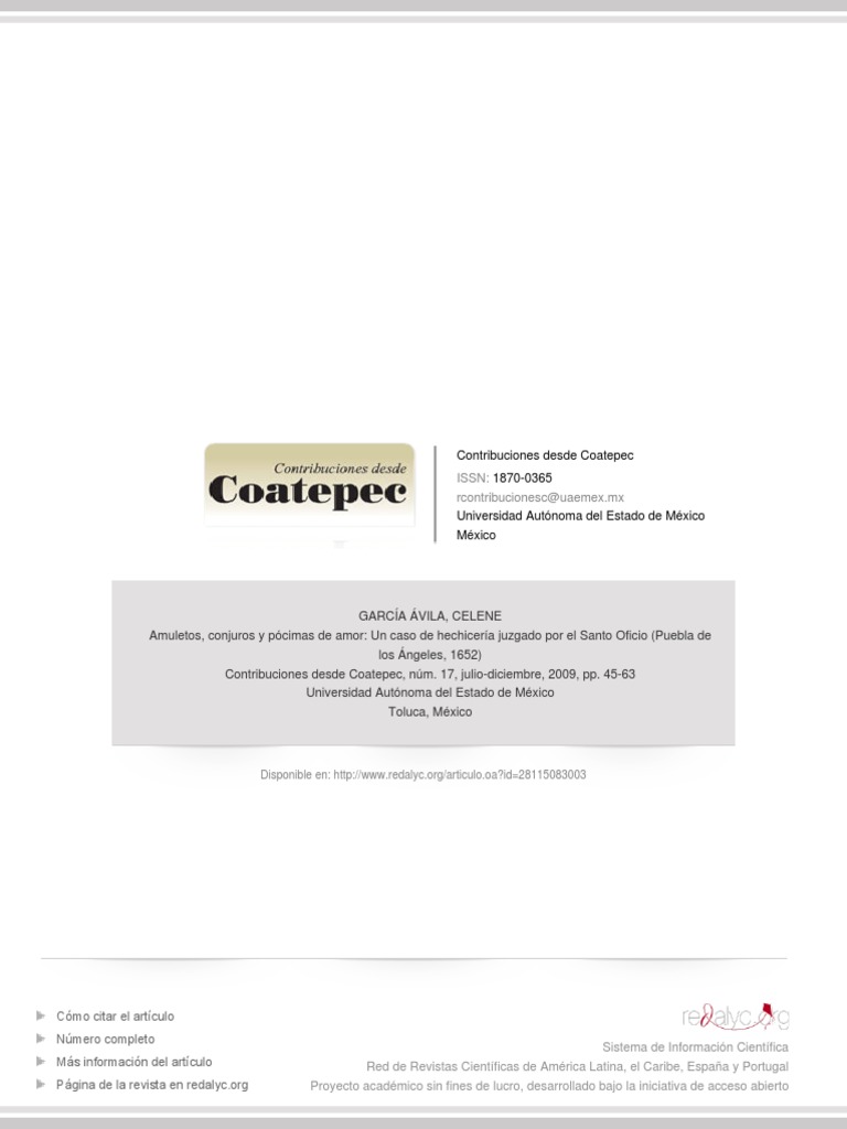 Abstract. This article analyzes the accusation against Margarita de Palacios, from Puebla de los