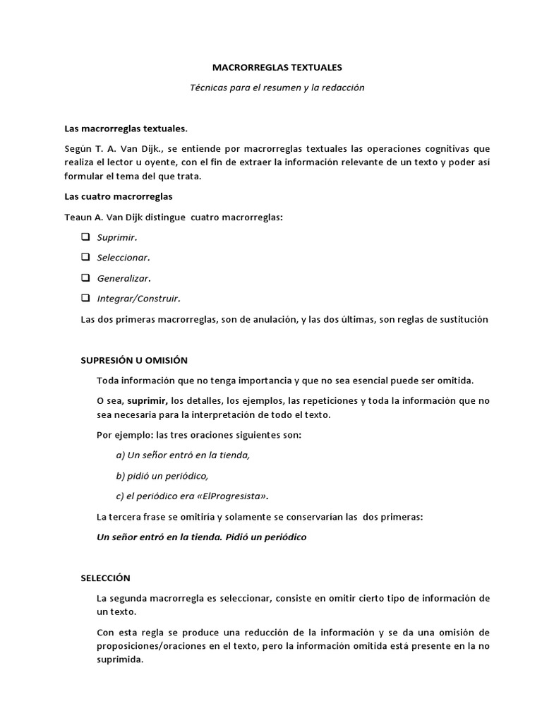 Según T. A. Van Dijk., se entiende por macrorreglas textuales las operaciones cognitivas que