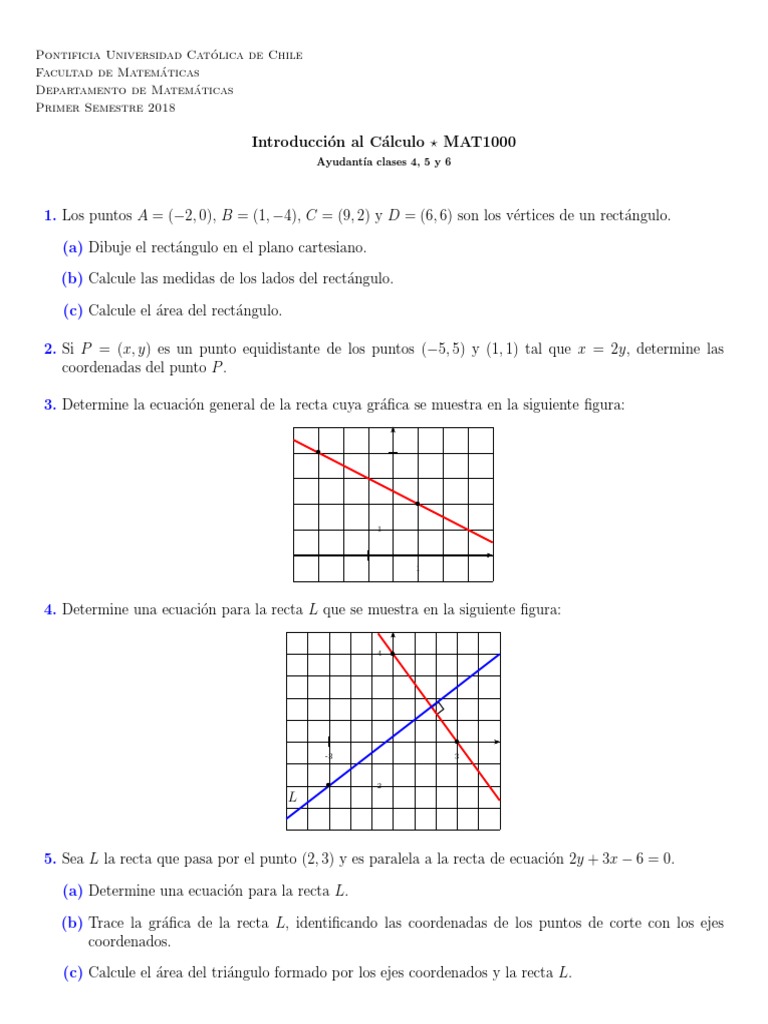 5. Sea L la recta que pasa por el punto (2, 3) y es paralela a la recta de ecuación 2y + 3x − 6 = 0.