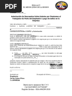 directamente el monto de este préstamo y hasta cancelar su totalidad, de mi salario que devengo como trabajador, de la