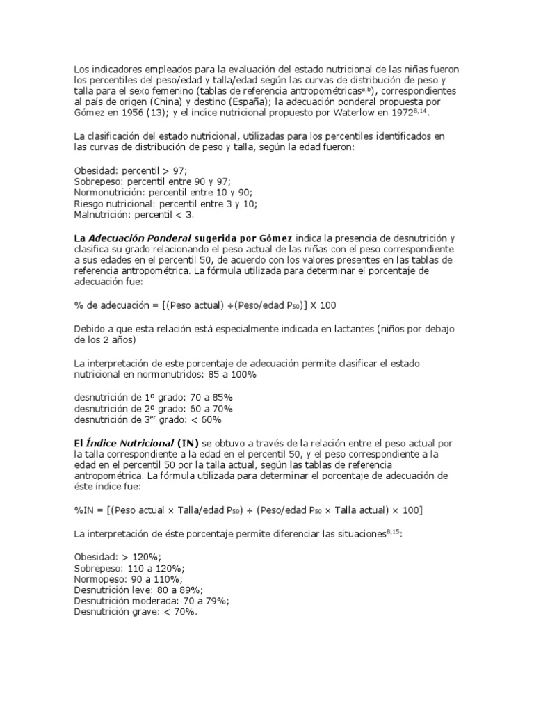Gómez en 1956 (13); y el índice nutricional propuesto por Waterlow en 1972 8,14.