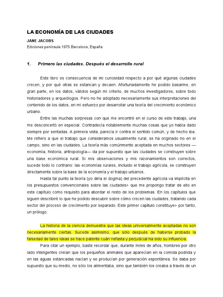 desarrollo de una economía si los individuos dentro de sus ciudades no añaden nuevos