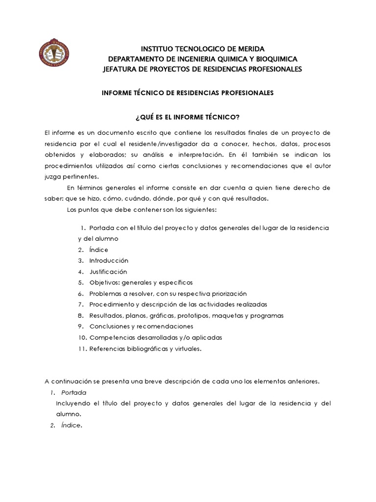 residencia por el cual el residente/investigador da a conocer, hechos, datos, procesos