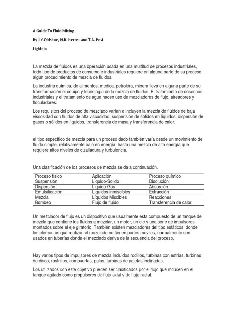 La mezcla de fluidos es una operación usada en una multitud de procesos industriales,