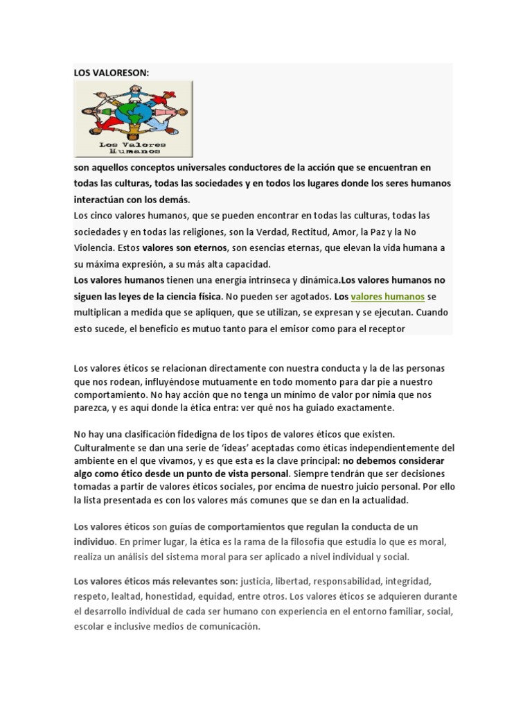 Los valores éticos se relacionan directamente con nuestra conducta y la de las personas