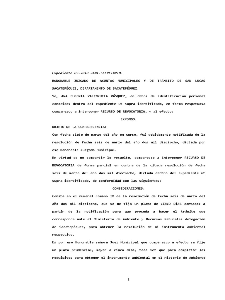 comparezco a interponer RECURSO DE REVOCATORIA, y al efecto: