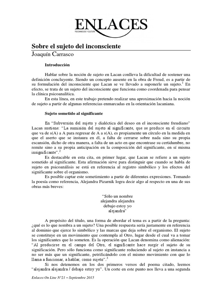 su formulación del inconsciente que Lacan se ve llevado a suponerle un sujeto.1 En
