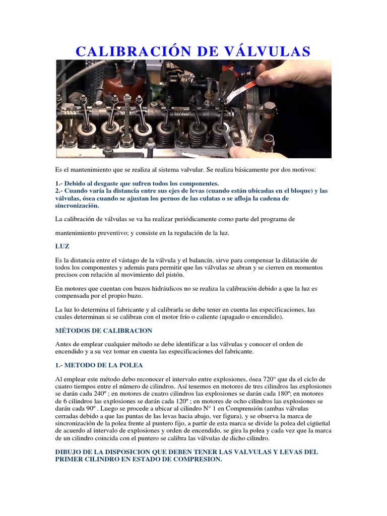 apunta hacia alguna marca se calibran las válvulas de dicho cilindro.