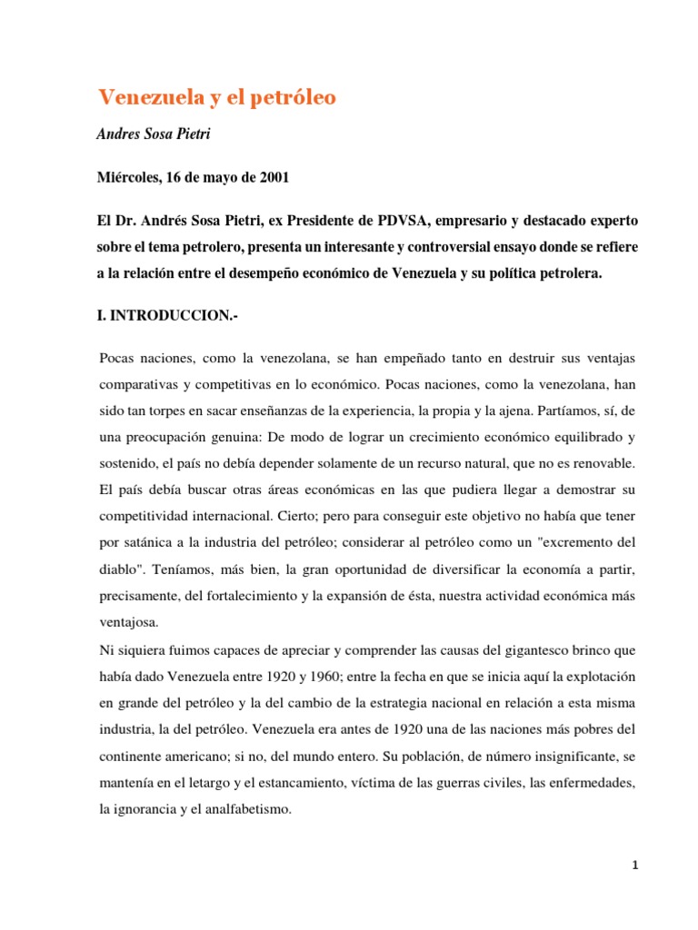 del Petróleo: Reversión Inmediata”, Cuadernos de la Sociedad Venezolana de