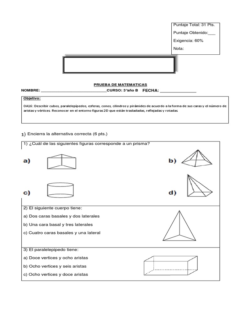 4) Pinta de rojo las pirámides y de azul los prismas (6 pts.)