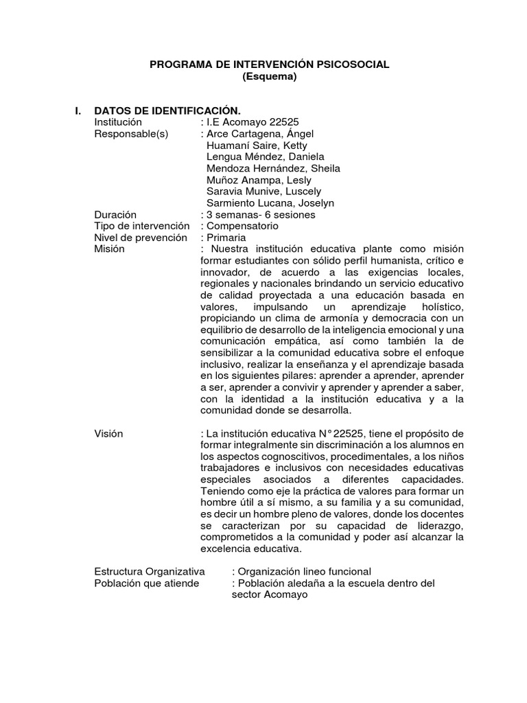 PROGRAMA DE INTERVENCIÓN PSICOSOCIAL