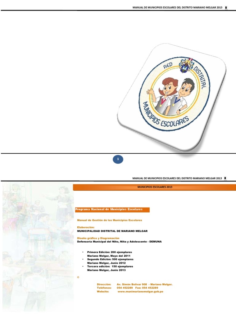 M an ua l de l os M un ic ip i os Es co la r es d el D is t ri t o de M ar ia no M el g ar