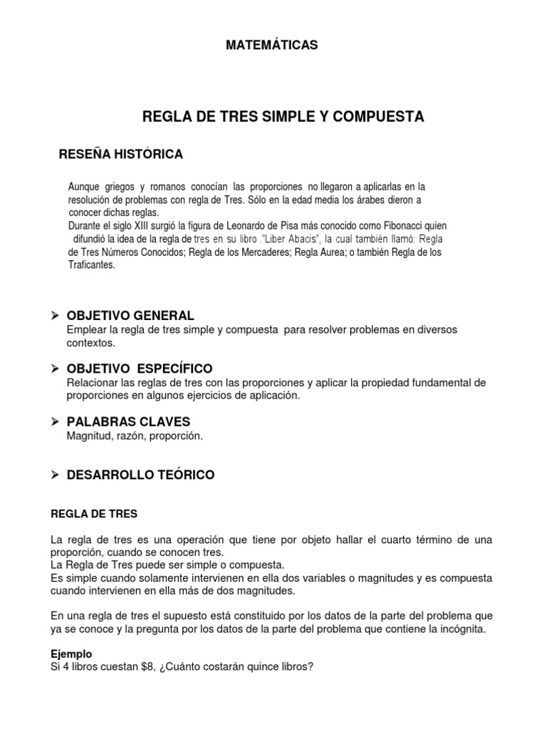 REGLA DE TRES SIMPLE Y COMPUESTA
