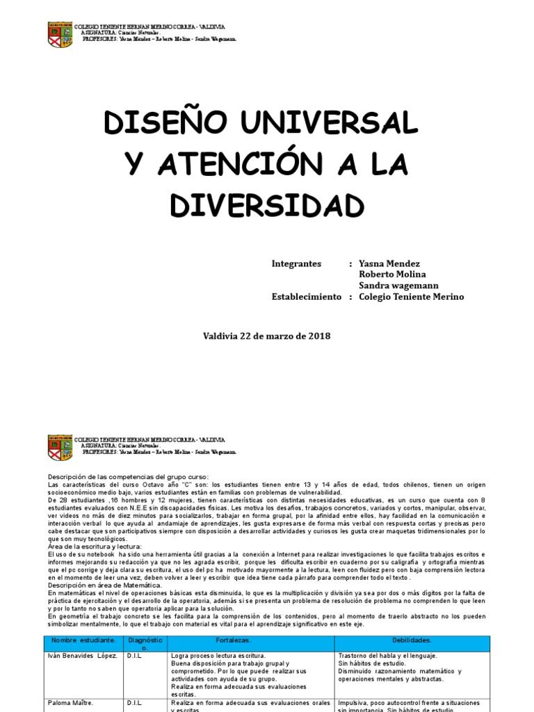 De 28 estudiantes ,16 hombres y 12 mujeres, tienen características con distintas necesidades educativas, es un curso que cuenta con 8