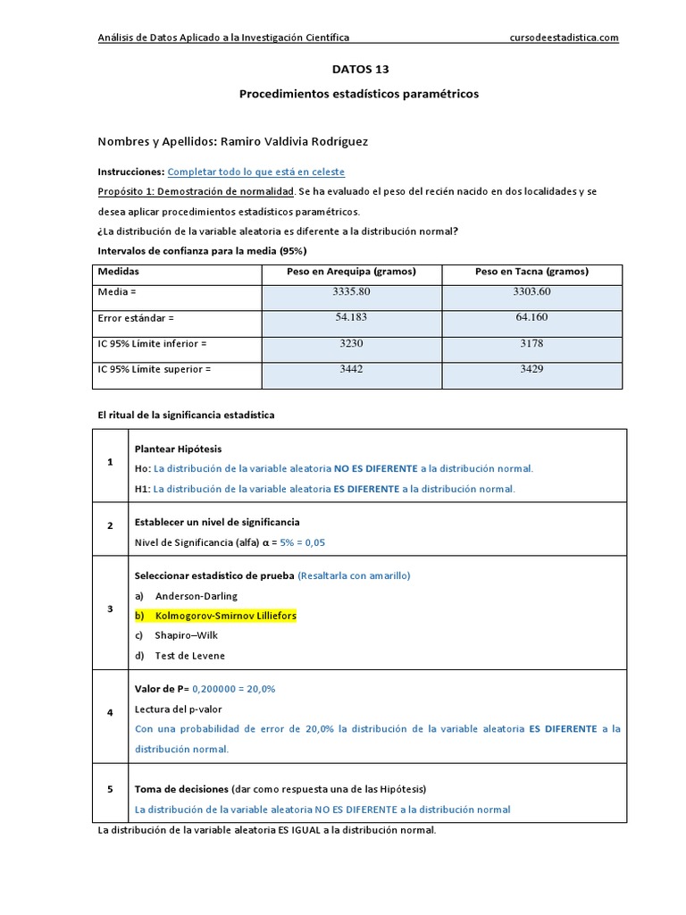Seleccionar estadístico de prueba (Resaltarla con amarillo)