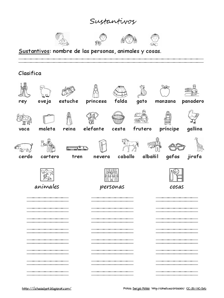 Sustantivos: nombre de las personas, animales y cosas.