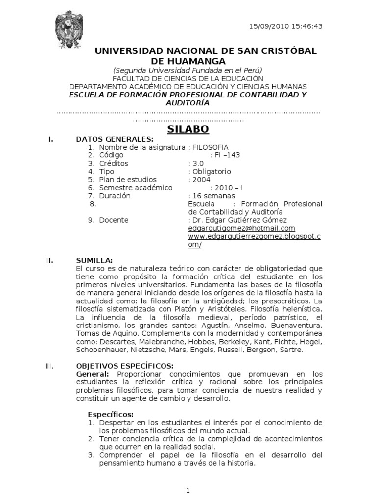 1. Nombre de la asignatura : FILOSOFIA