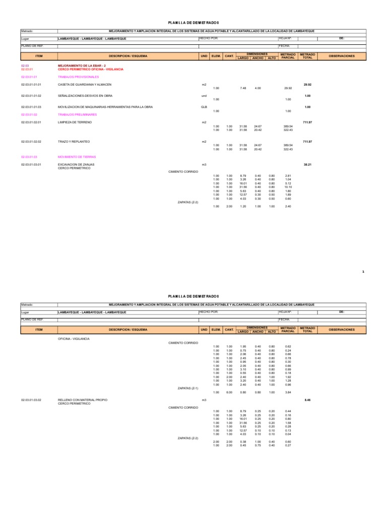 Metrado: MEJORAMIENTO Y AMPLIACION INTEGRAL DE LOS SISTEMAS DE AGUA POTABLE Y ALCANTARILLADO DE LA LOCALIDAD DE LAMBAYEQUE