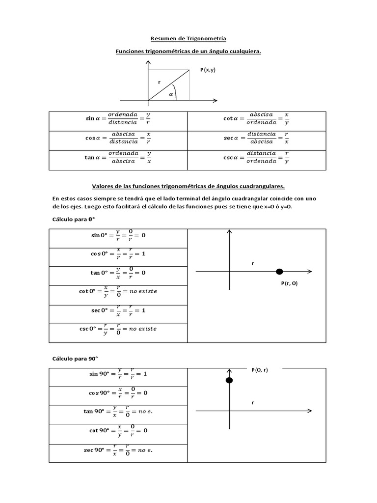 Valores de las funciones trigonométricas de ángulos cuadrangulares.