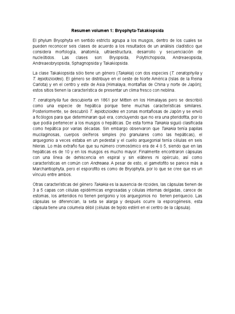 Resumen volumen 1: Bryophyta-Takakiopsida