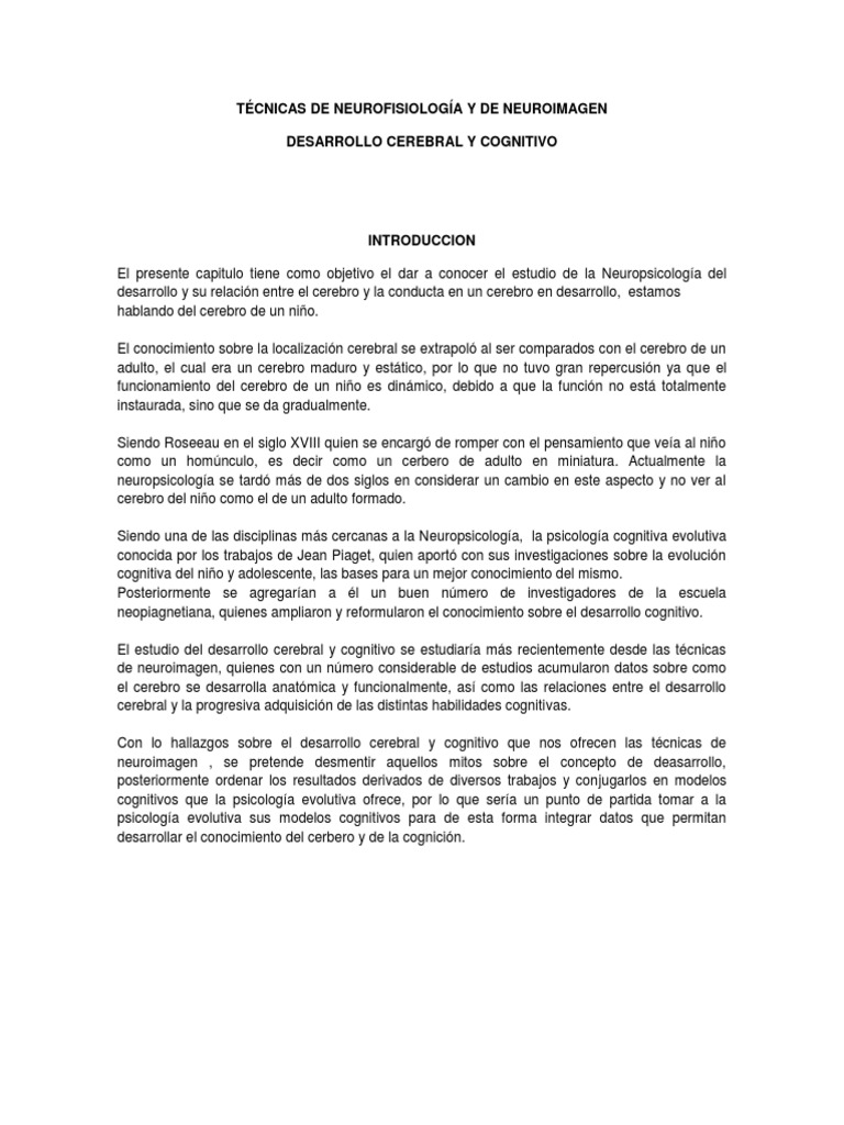 El estudio del desarrollo cerebral y cognitivo se estudiaría más recientemente desde las técnicas
