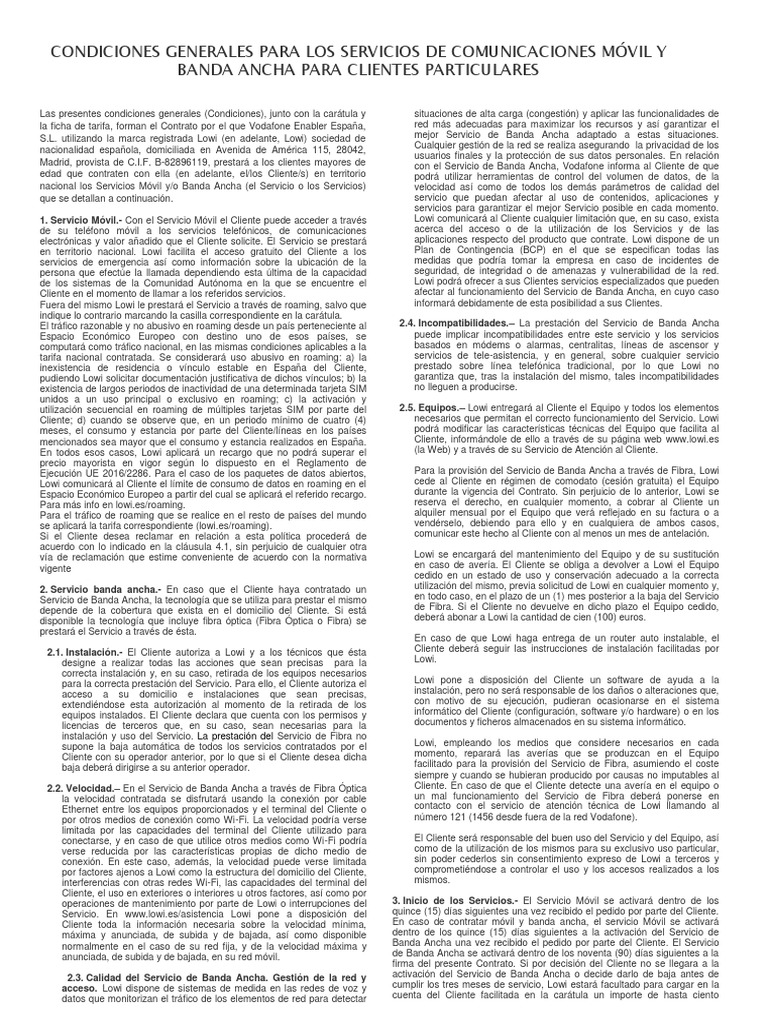 conexión. En este caso, además, la velocidad puede verse limitada sin poder cederlos sin consentimiento expreso de Lowi a terceros y