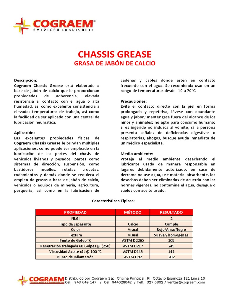 Cograem Chassis Grease está elaborado a frecuente con el agua. Se recomienda usar en un