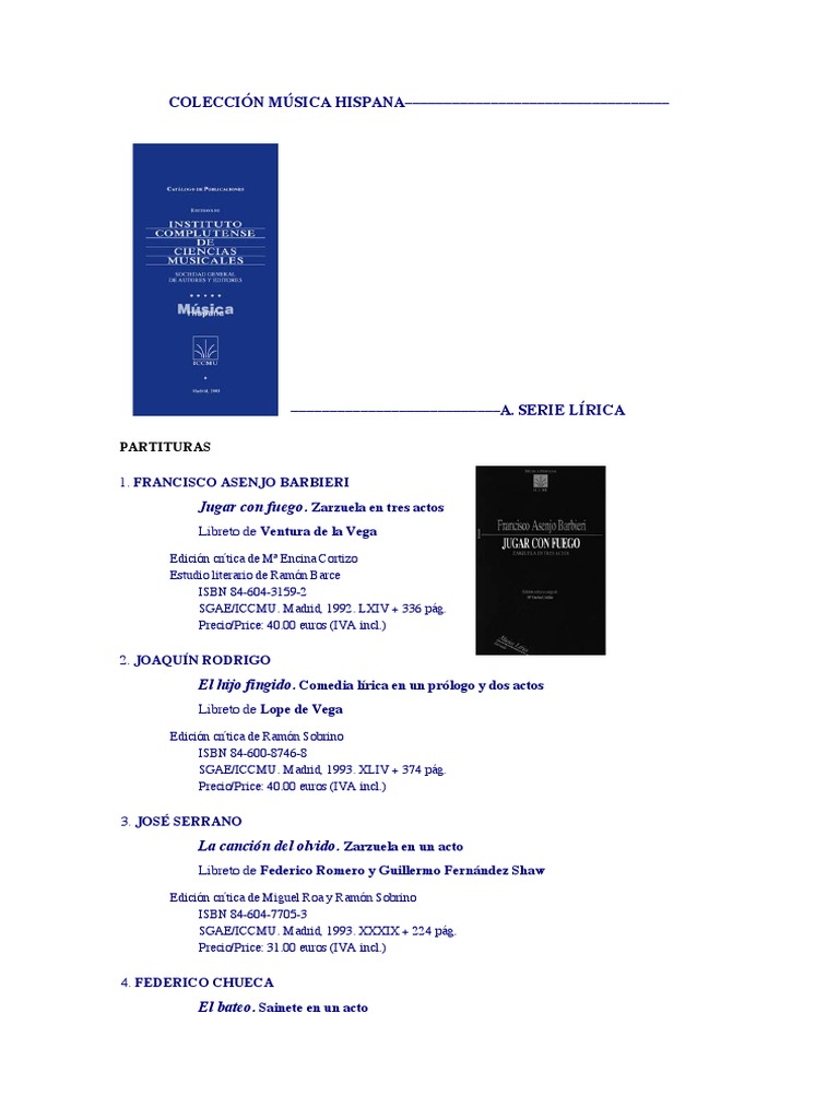 SGAE/ICCMU. Madrid, 1994. XL + 194 pág.