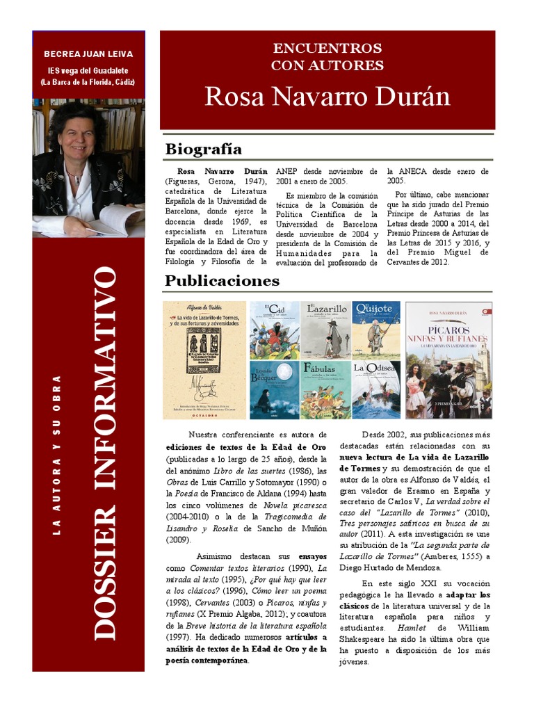 BERASÁTEGUI, Blanca, AZANCOT, Nuria. Rosa Navarro Durán, “Alfonso de Valdés escribió el Lazarillo”. 15 de mayo de 2003. [fecha de consul-