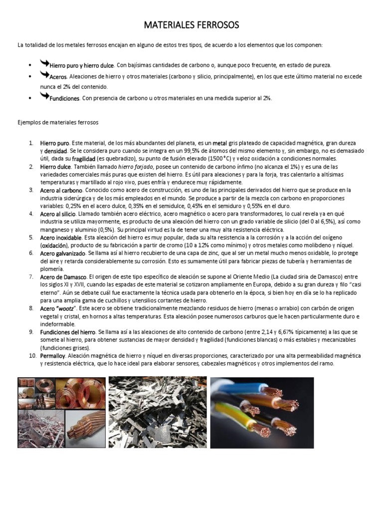 Ejemplos de materiales ferrosos