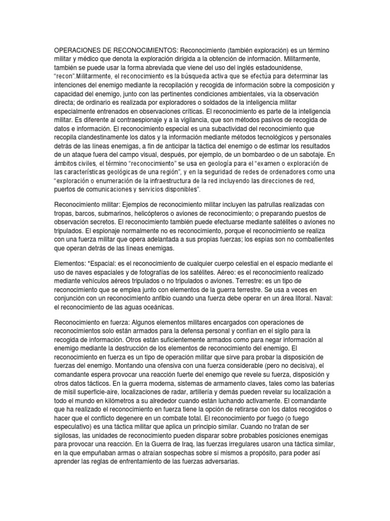 reconocimiento tiene como objetivo encontrar e informar a las fuerzas que puedan obstaculizar o