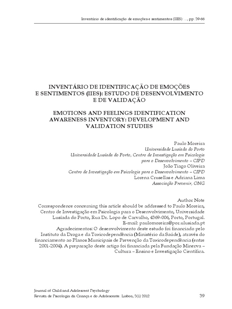 Inventário de identificação de emoções e sentimentos (IIES): ..., pp. 39-66